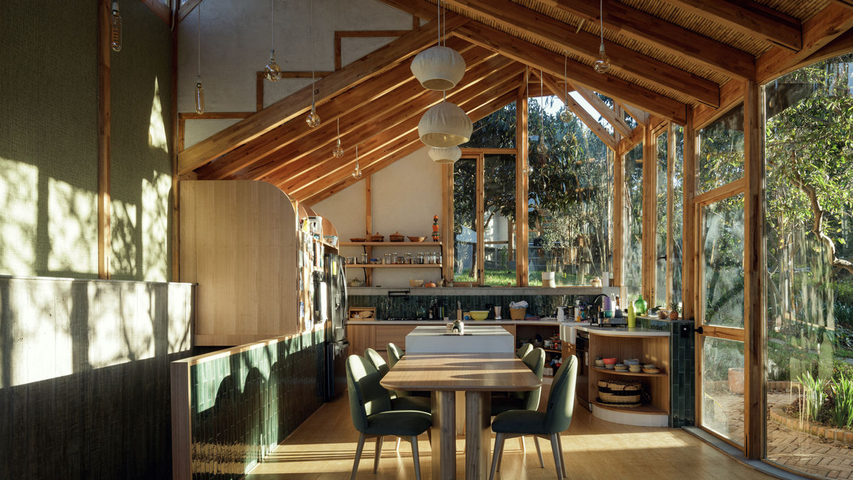 This passive-house standard dwelling nestles gently into a wooded site without felling a single tree: its volumes weave through natural clearings, leveraging existing shade and contours to minimize environmental impact. The organic footprint, free of rigid orthogonal boundaries, creates inward-facing courtyards that promote cross-ventilation and soft daylighting. Ventilated façades—featuring an air cavity behind burnt-wood cladding and carrizo screening—serve as a thermal buffer, keeping interior temperatures stable year-round.